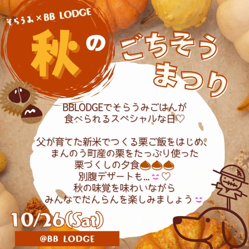ゲストハウスBB RODGEさんとのコラボイベント 「🌰秋のごちそうまつり🌰」 を開催します。