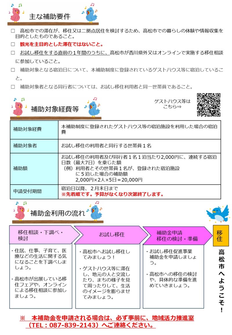 高松市お試し移住促進事業補助金告知チラシ②枚目